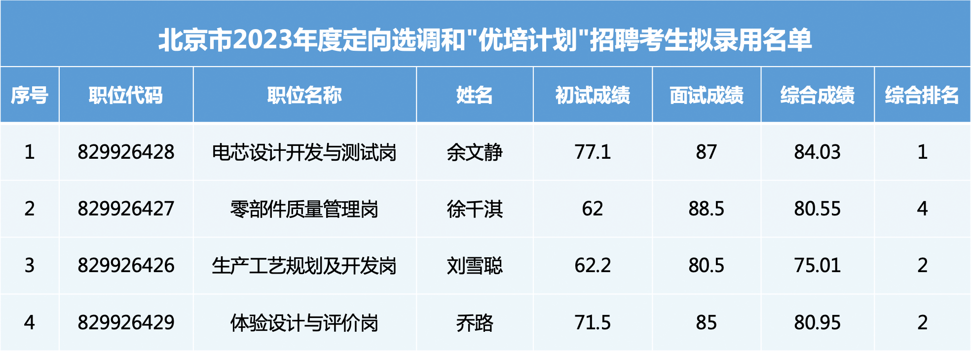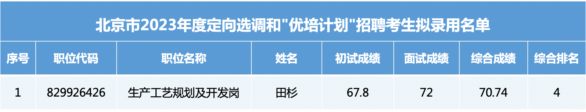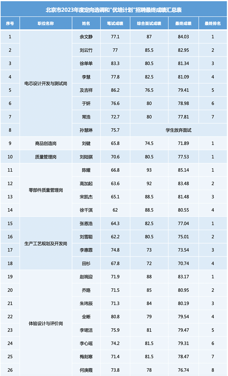 附件:北京市2023年度定向选调和“优培计划”招聘最终成绩汇总表